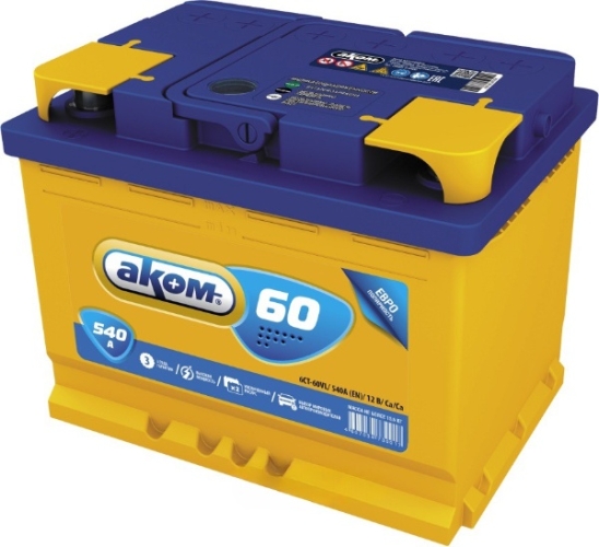 Батарея аккумуляторная АКОМ 4607034730543 60А/ч 540А 12В обратная полярн. стандартные (Европа) клеммы